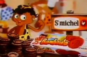 Les biscuits chocolatés de St Michel sont apparus en 1987 pour finalement disparaître en 1994 dans un scandale sordide (détails plus bas). La mascotte, créée par Mallock, était un petit africain habillé en léopard (un peu cliché donc…) si en plus on appelle ça « Bamboula » ça devient franchement gênant (sans … Lire la suite de Biscuits Bamboula de St Michel